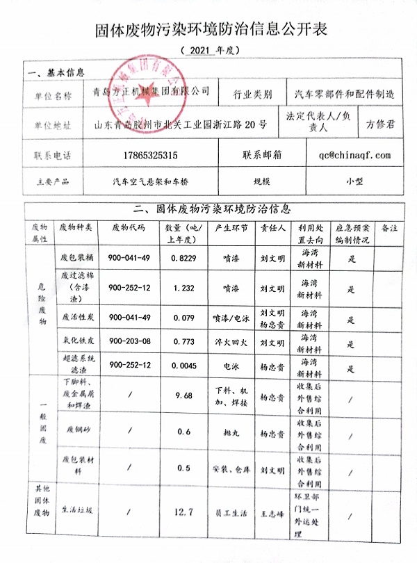 固體廢物污染環境防治信息公開表